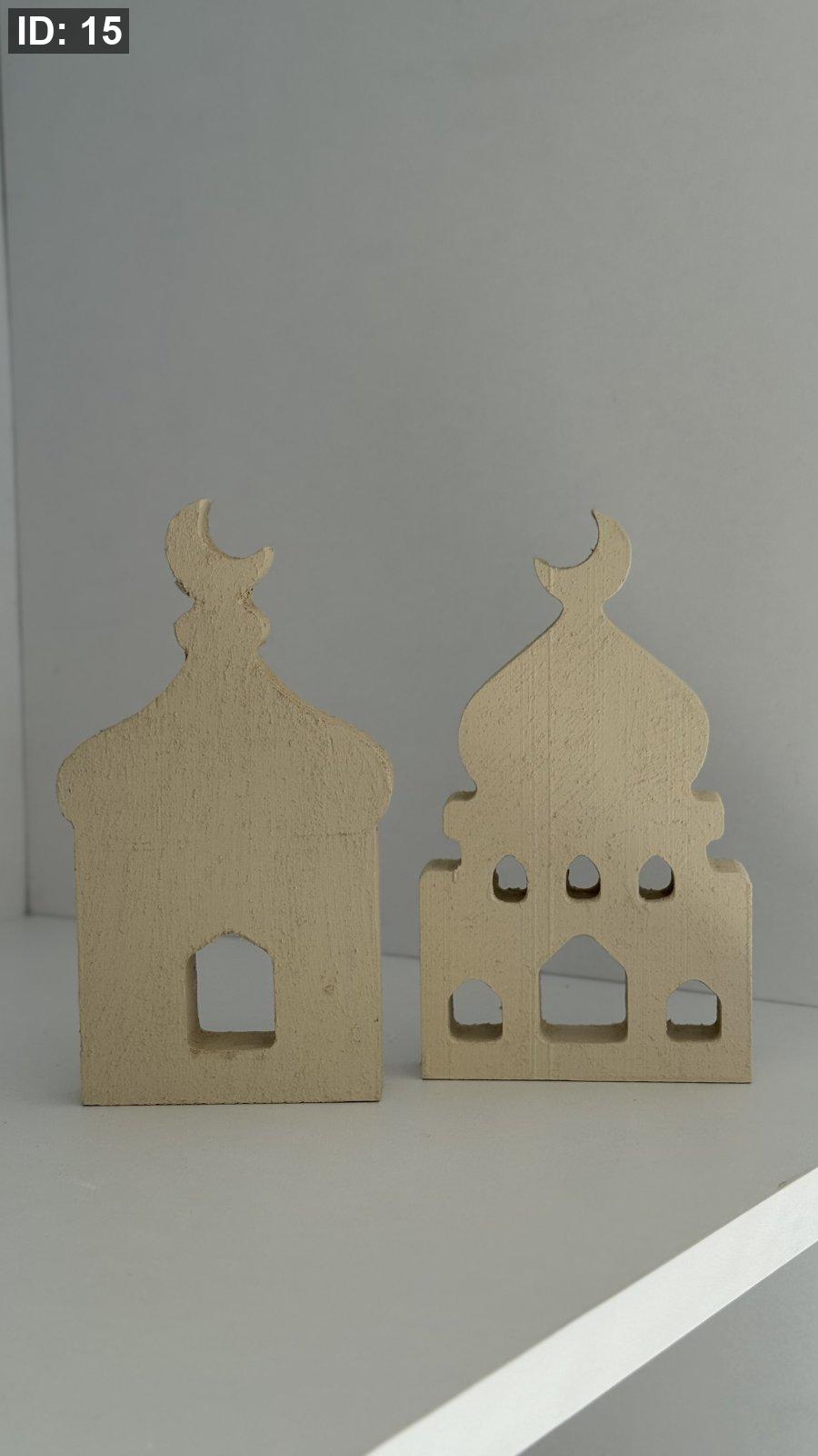 طقم مساجد عباره عن قطعتين من الخشب لا يمكن كسرهم متوفرين باللون الابيض والبيج