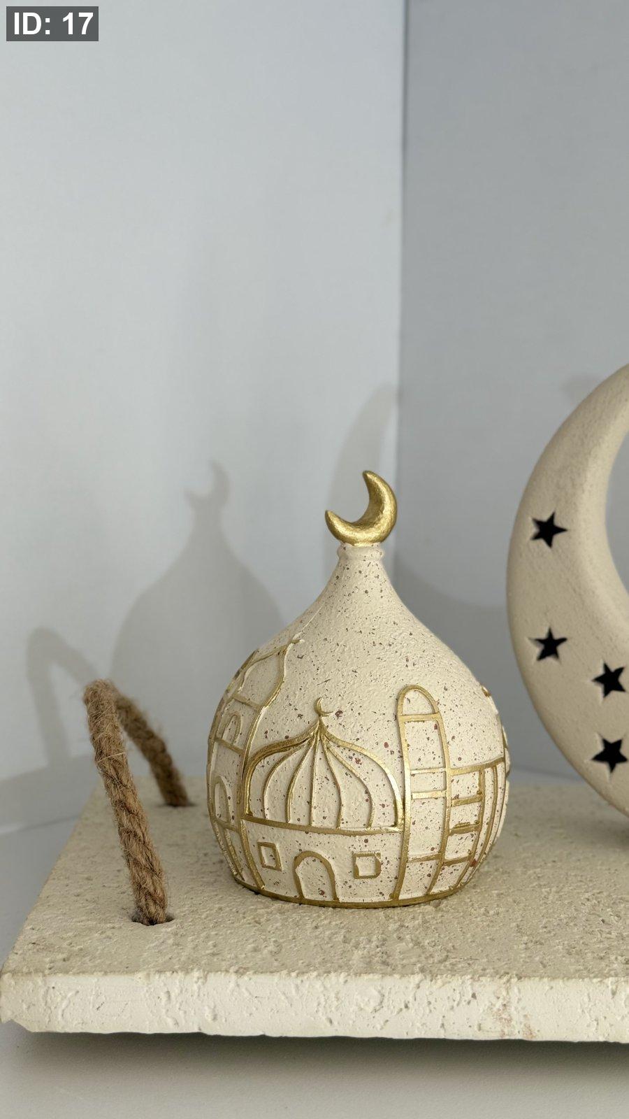 تحفة جبص مدور على شكل قبة مرسم مسجد ذهبي ( حجم صغير )